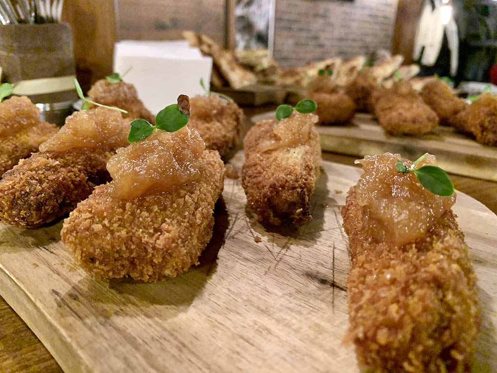 Ma ritorniamo all’accoglienza culinaria del Bertie’s  che ha avuto inizio con un aperitif da capogiro: mozzarella di bufala in carrozza, spicchi di focaccia, alici in tempura in abbinamento con il cocktail french 75 al mirtillo realizzato con Pietrafumante millesimato 2016 metodo classico 100% Caprettone di Casa Setaro. Buono, rinfrescante, sbalorditivo!!