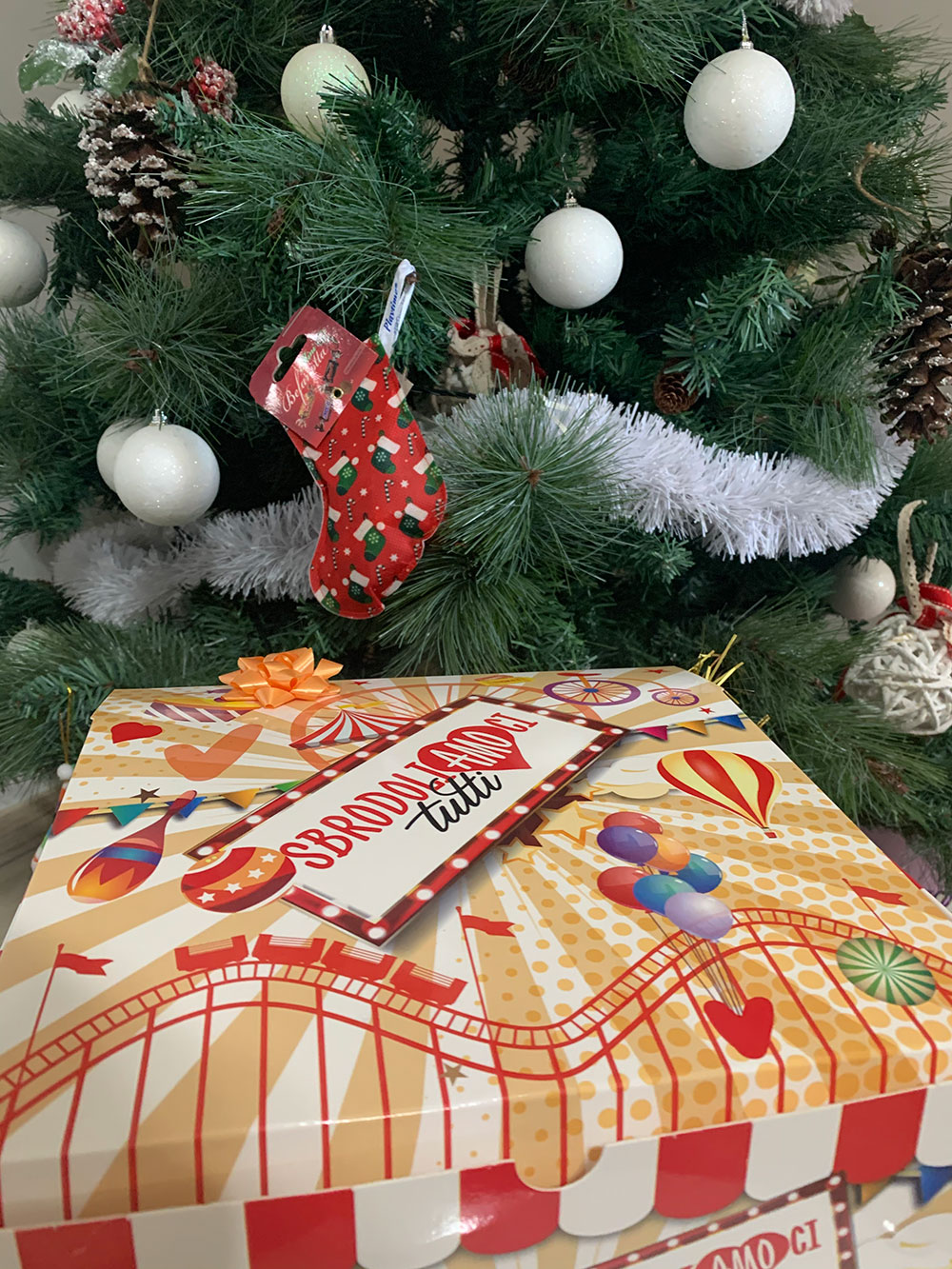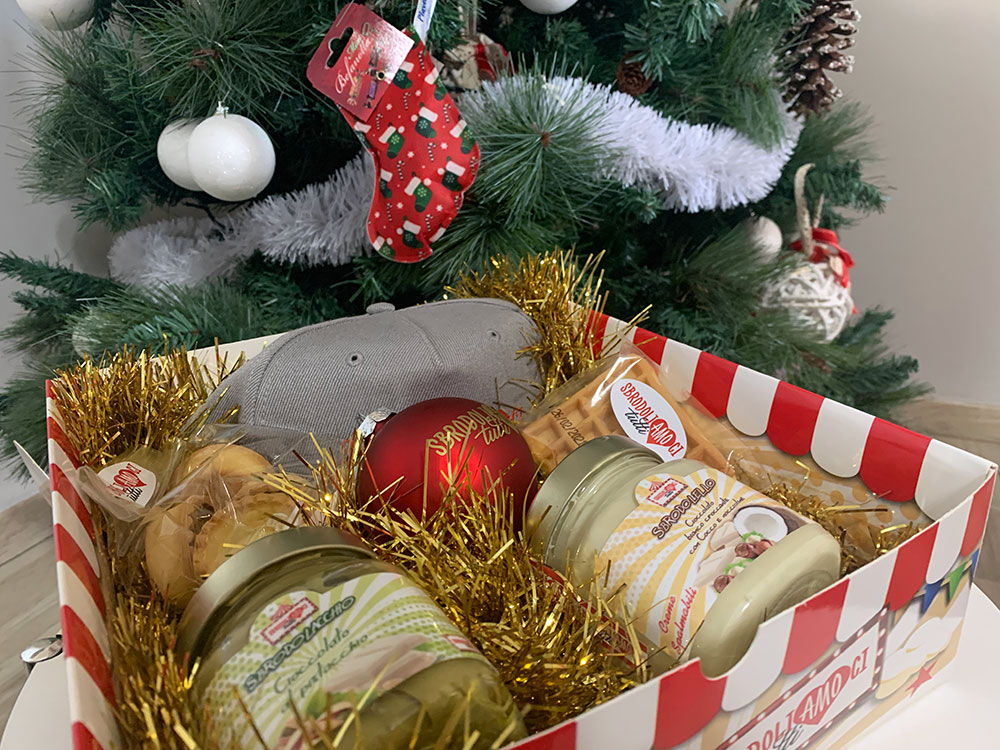 La Box della Befana è ricca di sorprese la partire dallo Sbrodolello una crema al cioccolato bianco croccante con cocco, allo Sbrodolacchio crema al pistacchio accompagnati da mini waffel e canestrini fino ad arrivare ad una sorpresa marchiata “sbrodoliamoci tutti”…una pallina rossa per addobbare il vostro albero.