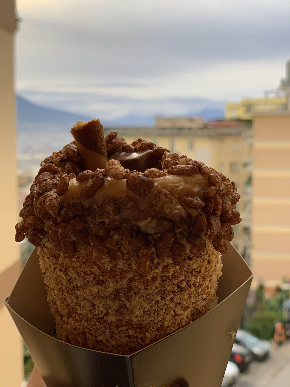 Ho apprezzato molto i prodotti, le creme sono di qualità e soprattutto innovative nel sapore. Ora non mi resta che provare le due specialità della casa di cui mi ha tanto parlato Antonio De Sarno, padron del locale: la mattonella’, un dolce di sua creazione, fatto con una base di pan di spagna e yogurt, e l’immancabile cornettone da 1 kg.