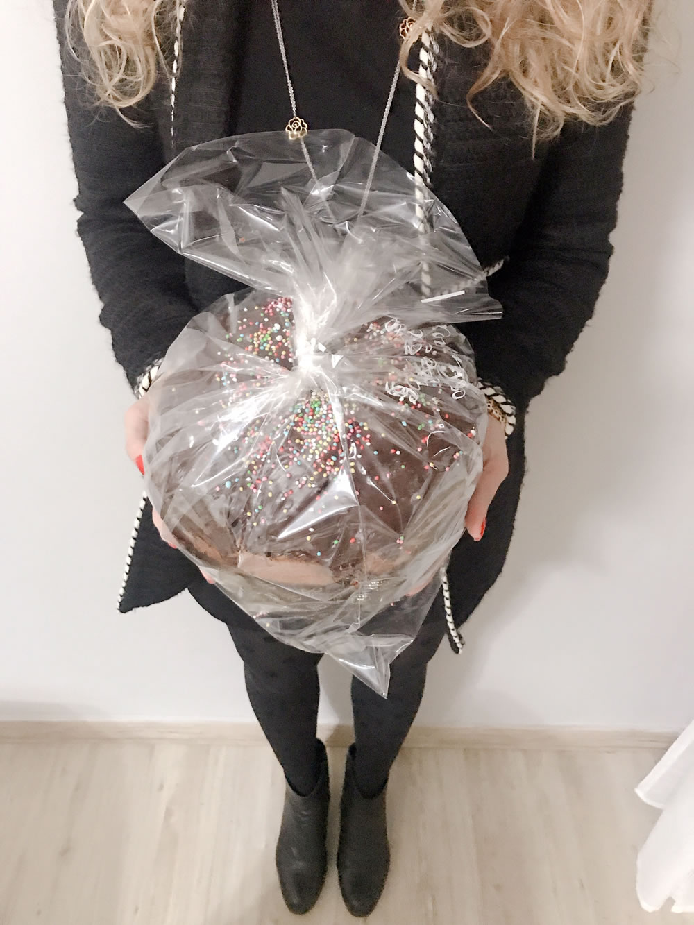 Infine è glassato con il cioccolato e confettini. Gli ingredienti sono tanti ed è per questo che la lievitazione è di ben 48 ore a 28 gradi con l’ 80% di umidità.