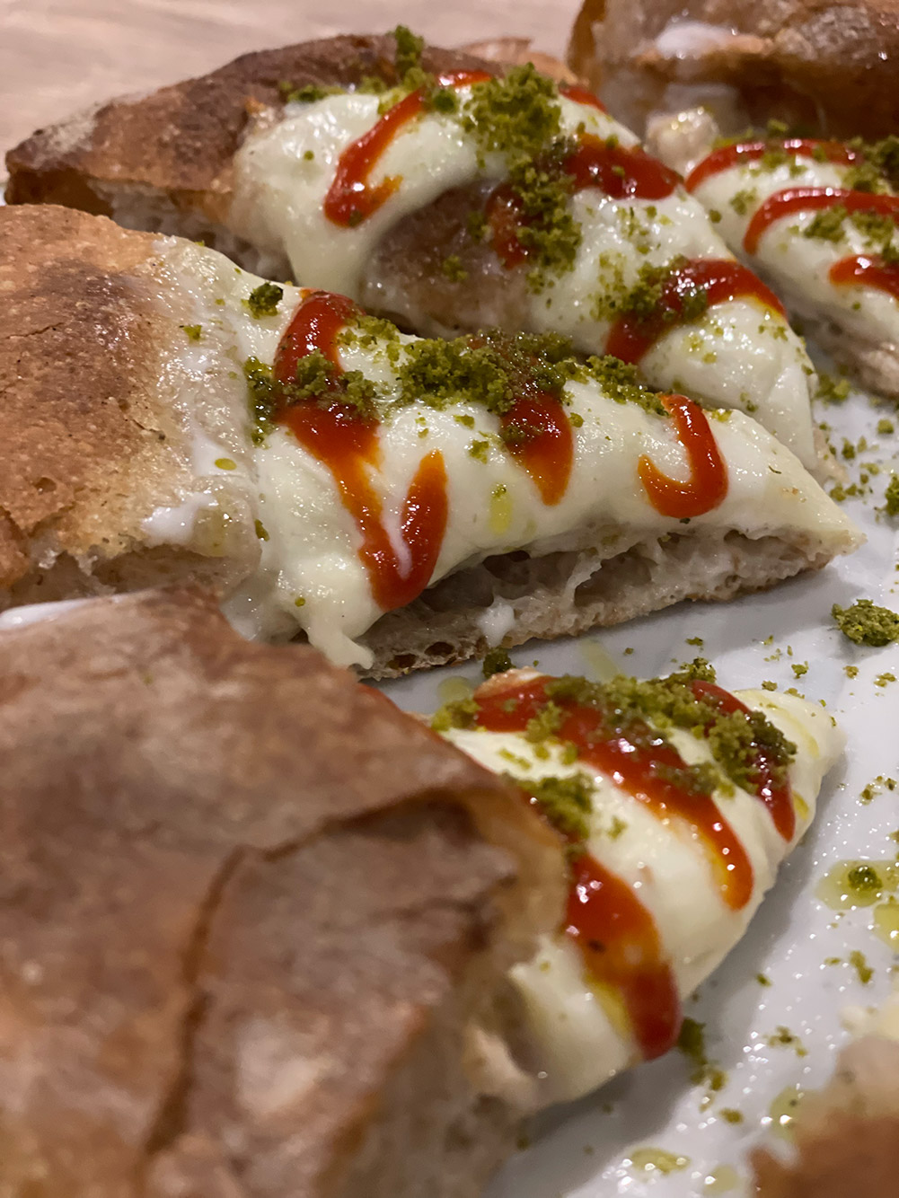 Pizza da degustazione (impasto ai grani antichi campani, con lievito madre integrale ceppo San Francisco)