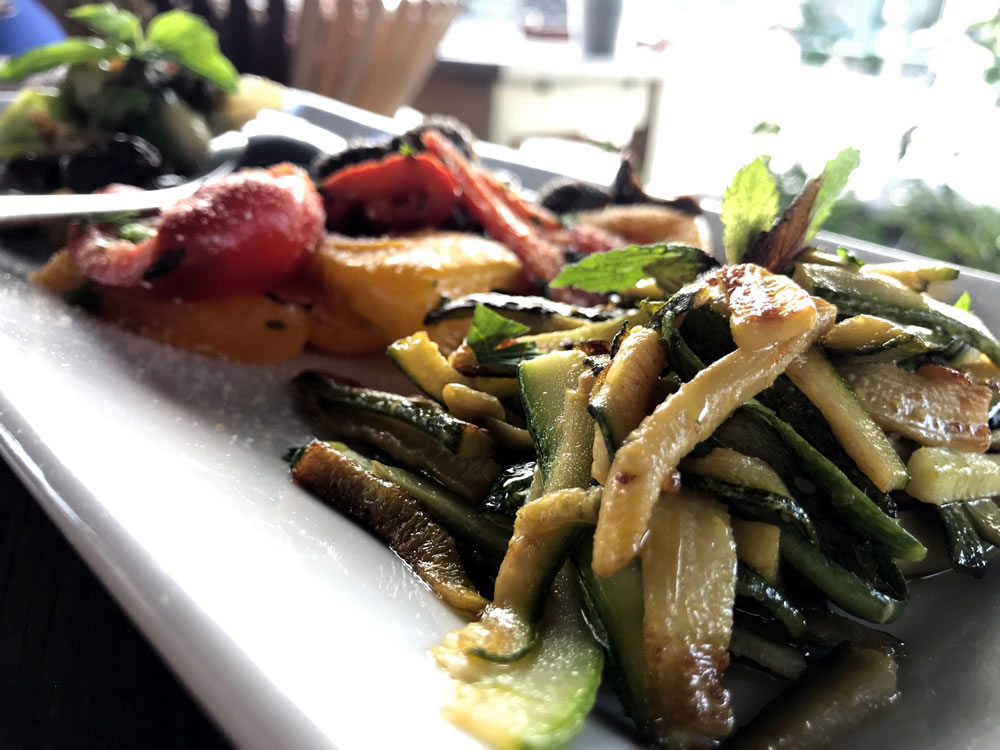 Tornando alla cucina la materia prima utilizzata è eccellente, basti pensare alle verdure, molto richieste dai clienti più affezionati, come la scarola saltata in padella e impreziosita con noci, capperi, olive e colatura di alici di Cetara, peperoni saltati con pan grattato, olive nere, capperi e zucchine a scapece.