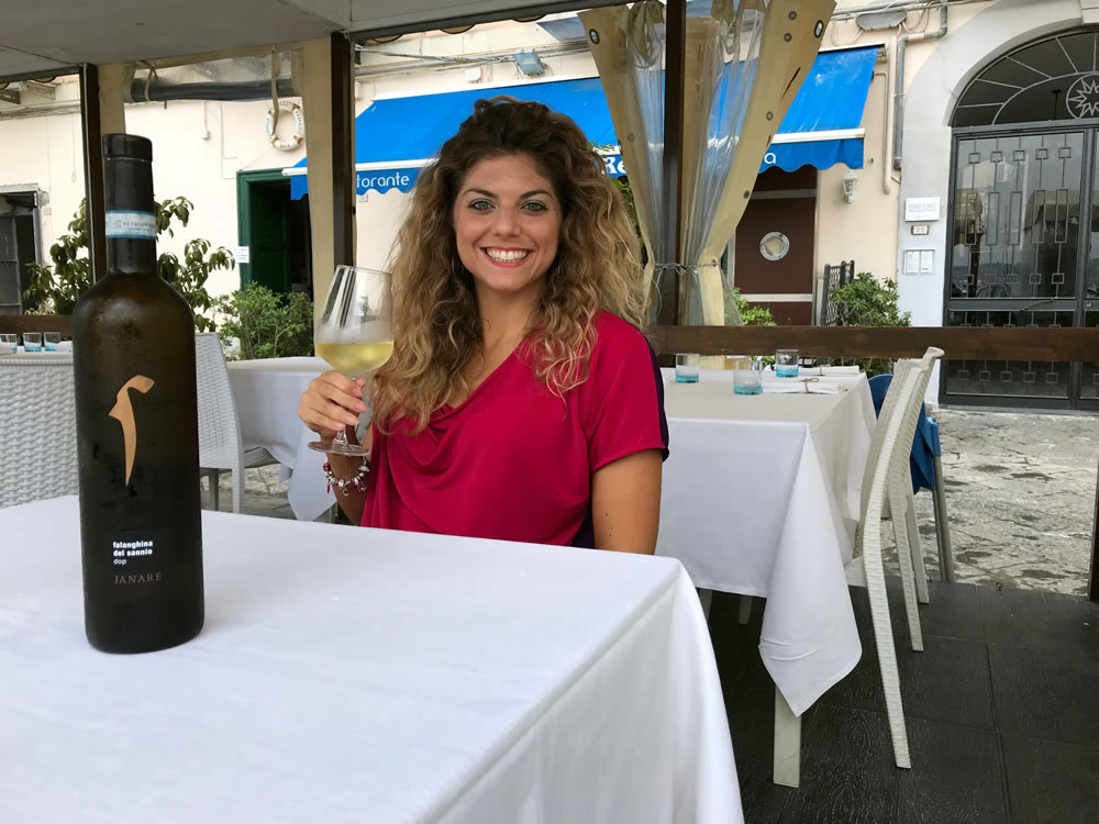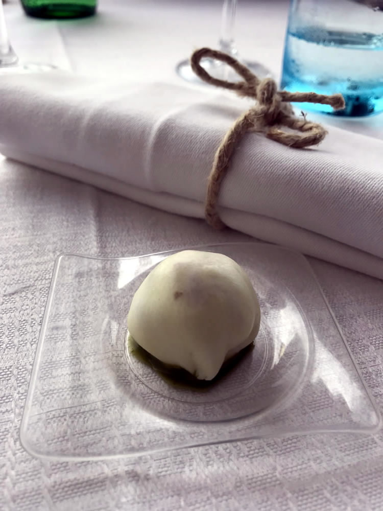 Inizio di ottima fattura con una falanghina frizzante spumantizzata, Janare, e mozzarellina al contrario adagiata su pesto di basilico e farcita con pomodorini.